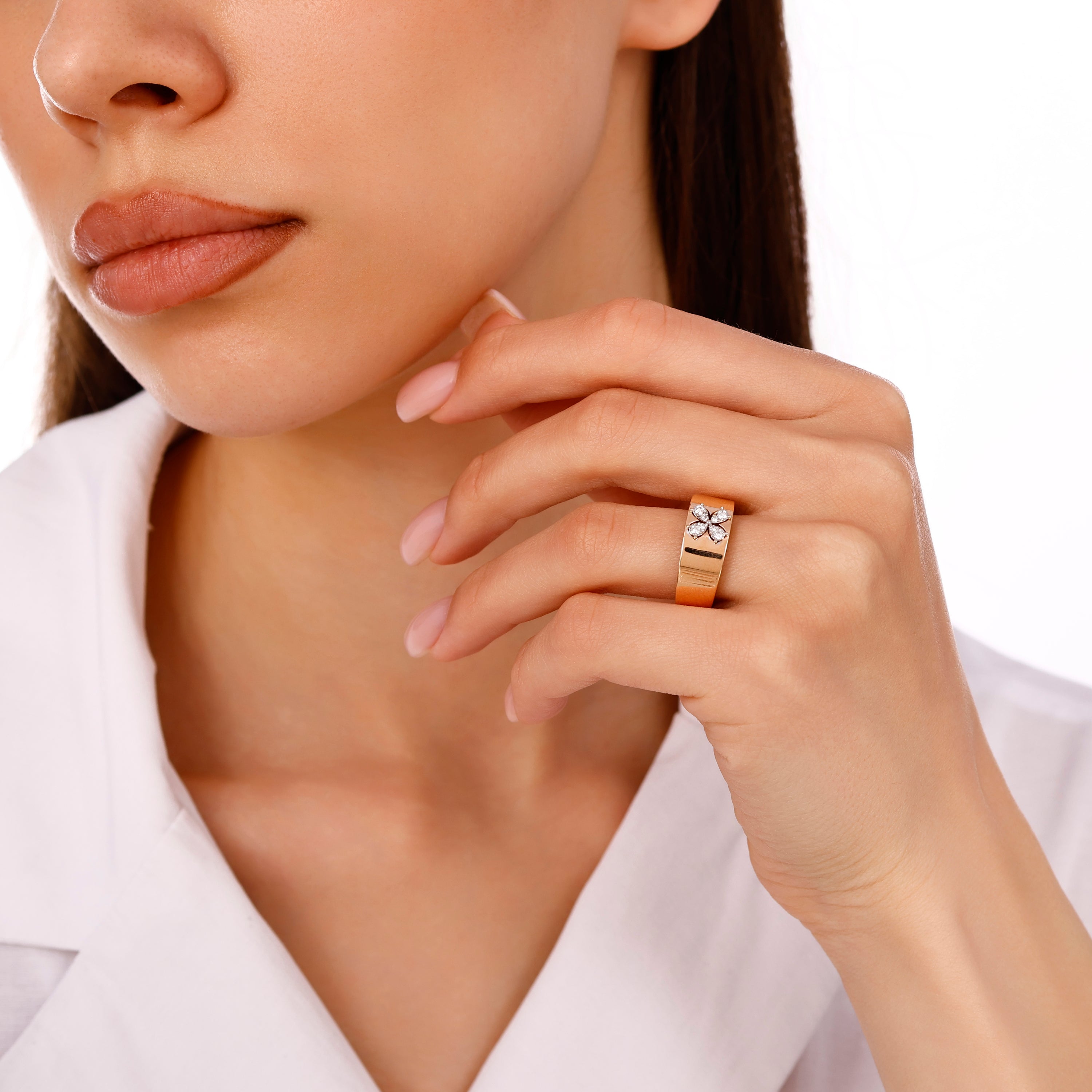 Pırlantalı 0.14 Ct. Rose Fantezi Yüzük 18K