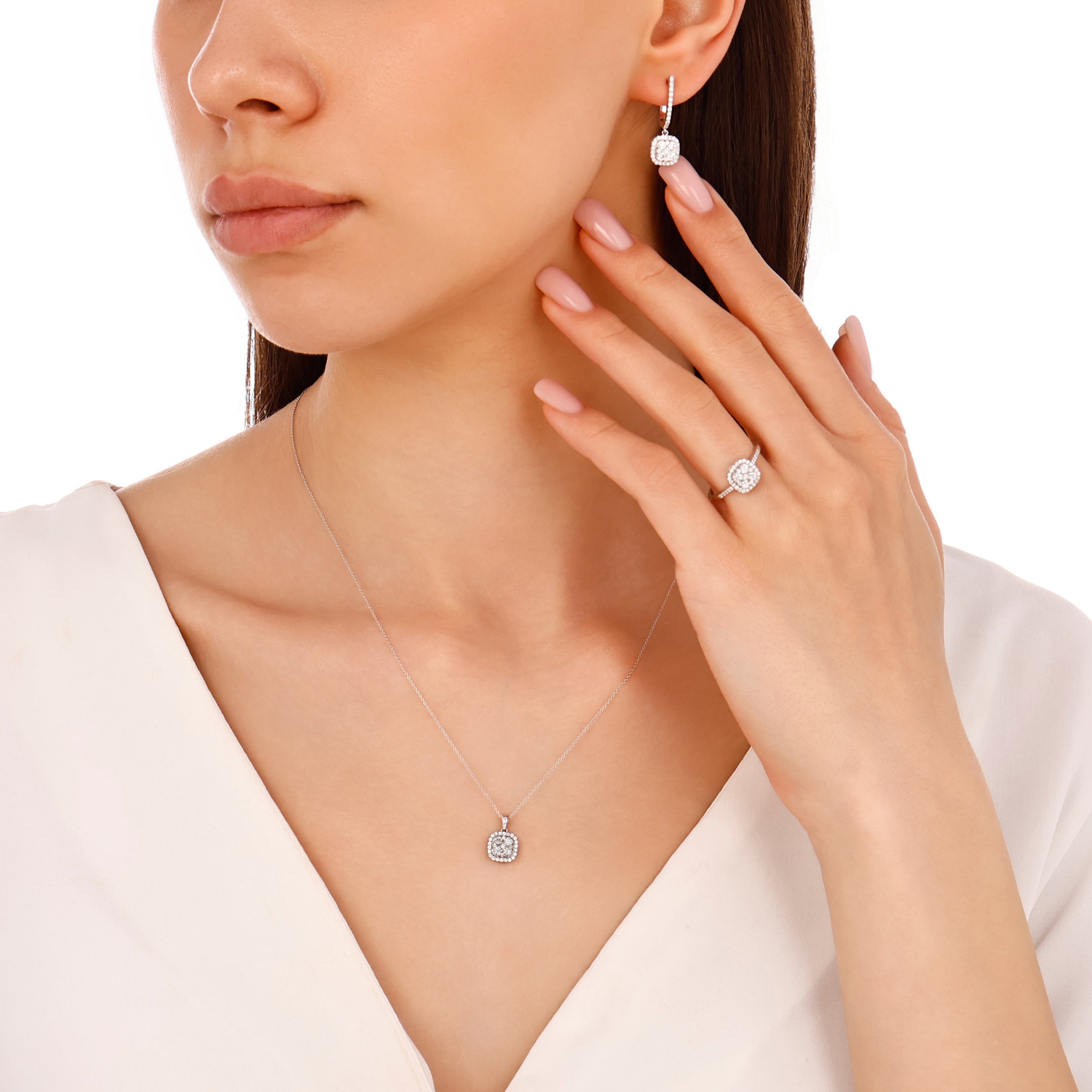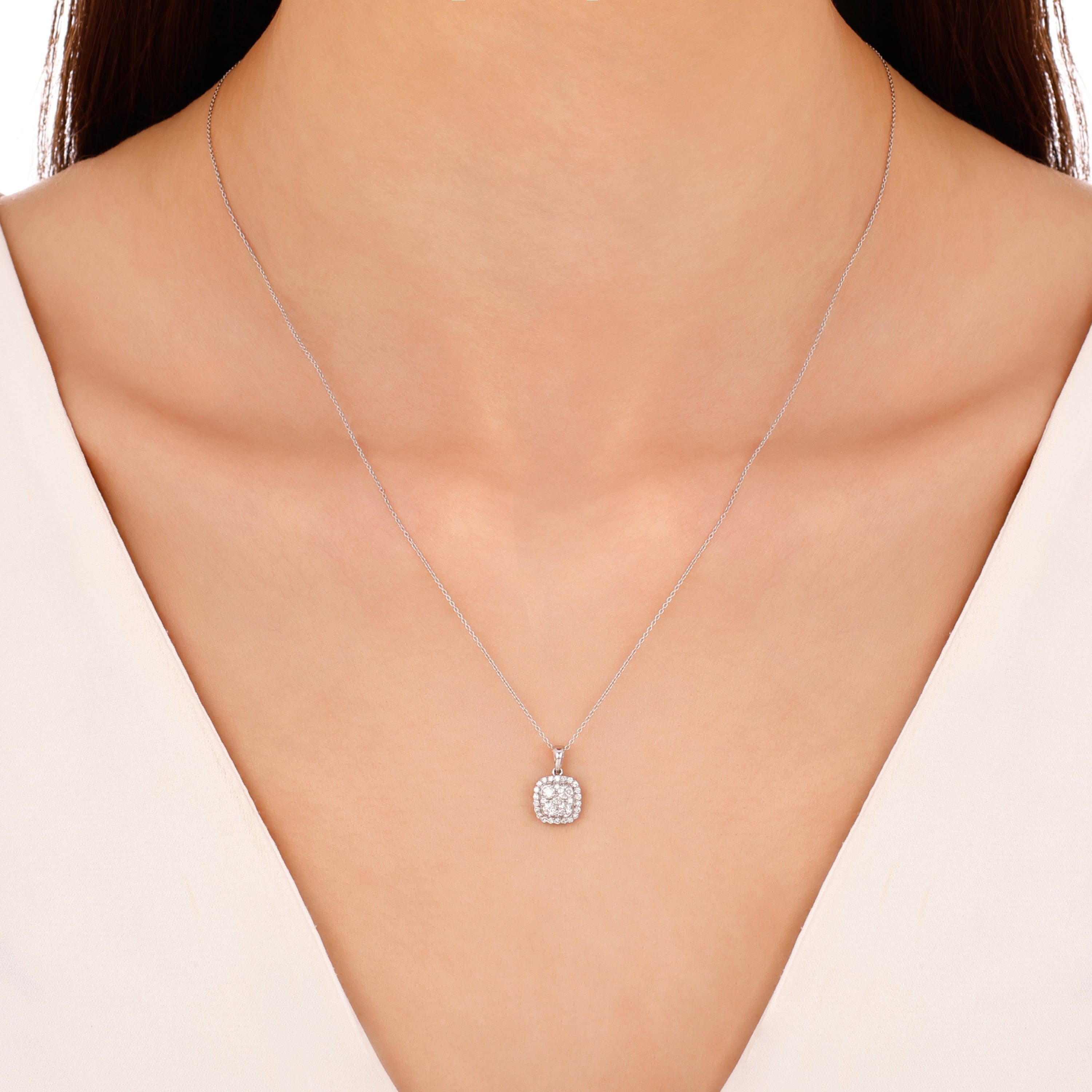 Zarif Indusa kolye, farklı pırlanta gruplarının ışıltısını beyaz altının modern duruşuyla birleştiriyor. Bu özel tasarımda, toplam 0.34 karatlık üç grup yuvarlak pırlanta bir araya gelerek göz alıcı bir parlaklık yaratıyor. 14 ayar beyaz altın gövdesi ve 1.70 gram ağırlığıyla bu kolye, her anınıza değer katacak.